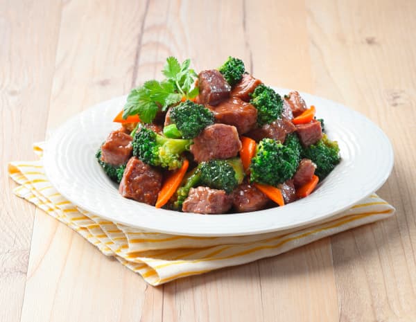 2. Heat the vegetable oil in a wok until smoking, add the beef and stir fry until half done.