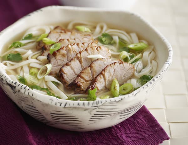 Place the sliced Char Siu Pork on top of noodle soup (with chicken stock), and sprinkle a bit of spring onion, to get the famous Char Siu Noodle Soup!