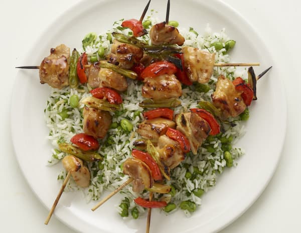 Grill the skewers for 15-20 minutes, turning and brushing with marinade. Reheat the rice as directed on pack and toss with remaining 2 tbsp Lee Kum Kee Vietnamese Style Spicy Lemon Dressing and coriander.