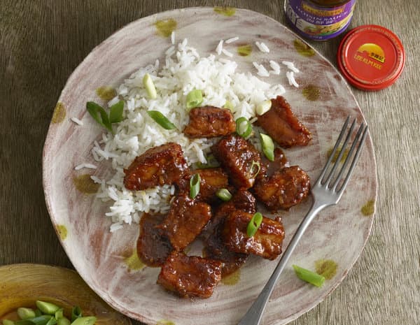 2. Add in 5 tbsp Lee Kum Kee Red Braising Sauce and water.