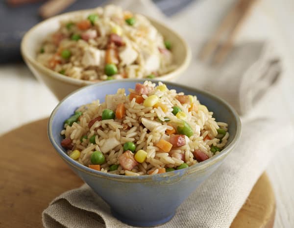 Add the cooked rice, Lee Kum Kee Premium Oyster Sauce and Lee Kum Kee Premium Light Soy Sauce . Stir-fry for 2 minutes to heat the rice and to distribute the sauce throughout.